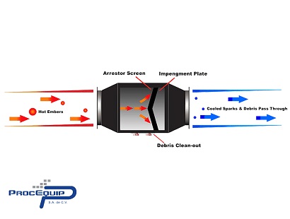 Panel en la entrada de flujo al colector para atrapar chispas o partículas pesadas